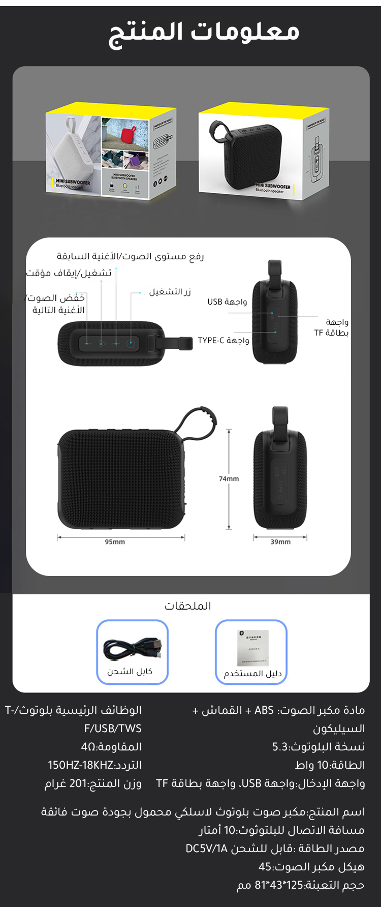 مكبر صوت بلوتوث لاسلكي محمول في الهواء الطلق بجودة صوت رائعة